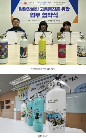 아트 소화기는 그림도 발달장애인 아티스트의 작품이지만 소화기 바디도 장애인 표준사업장에서 만들었으므로 어디 하나 버릴 것이 없지요.